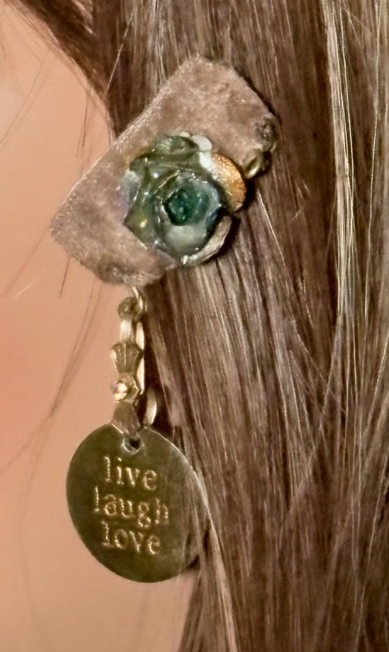 CLIP-IT Charming Attachment Golden Brown Velvet RoseBud & "live laugh love"