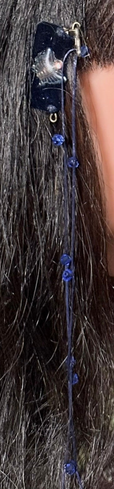 CLIP-IT XTension Butterfly Black Glitter Velvet & Stretchy Blue Faceted Crystals
