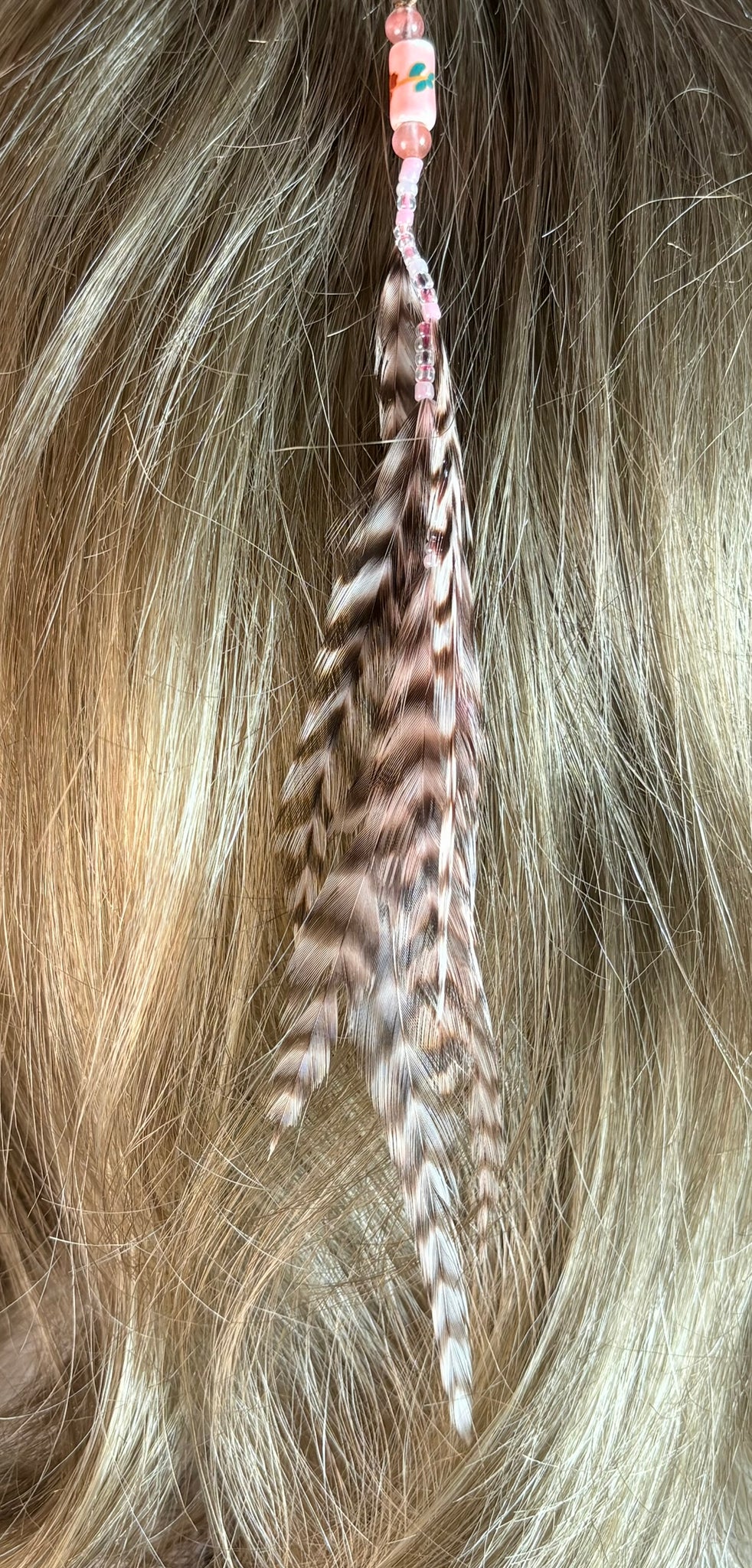 Feather Hair Xtension 61 Ceramic Bead Seed Beads (8 Feathers)