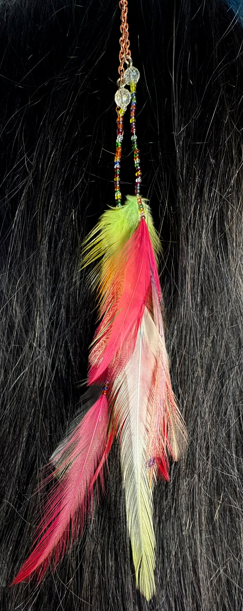 Feather Hair Xtension 72 Chained Crystals Seed Beads (10 Feathers)