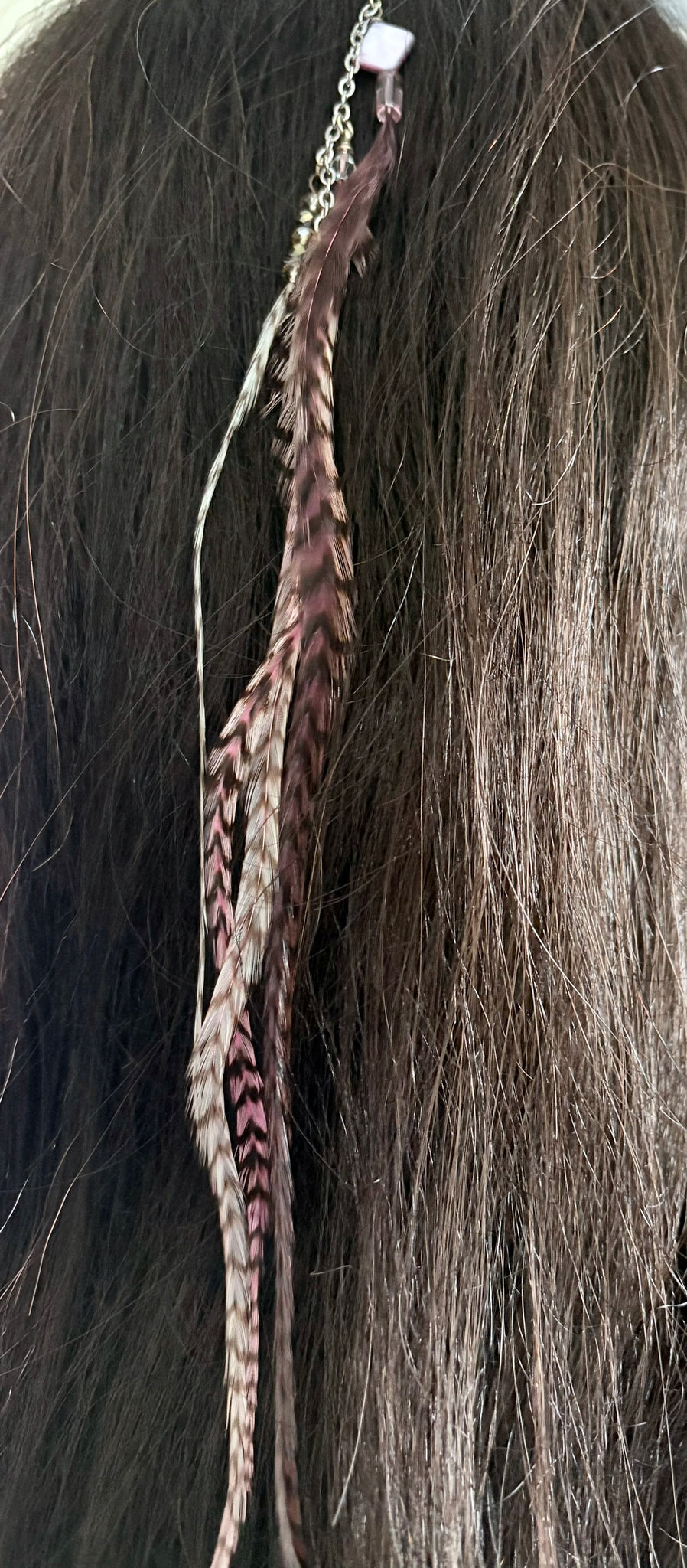 Feather Hair Xtension 84 Natural Beads Crystals Chained (4 Feathers)