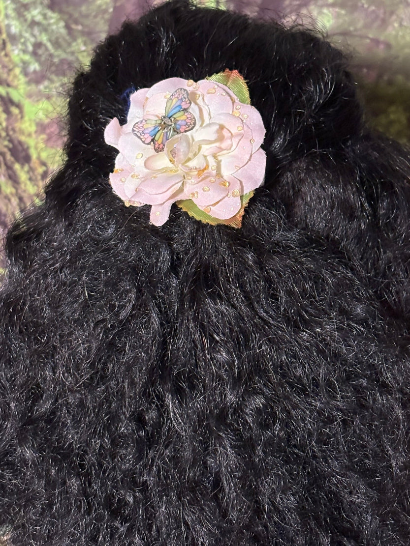 Faux Flower Pink Crystal Rose 'Butterfly Fairy'