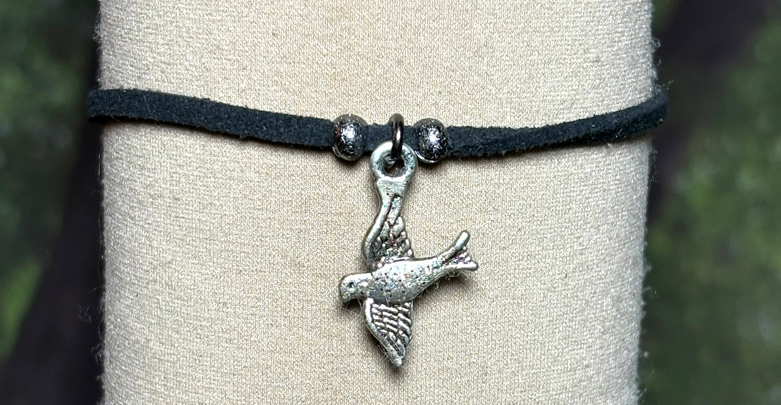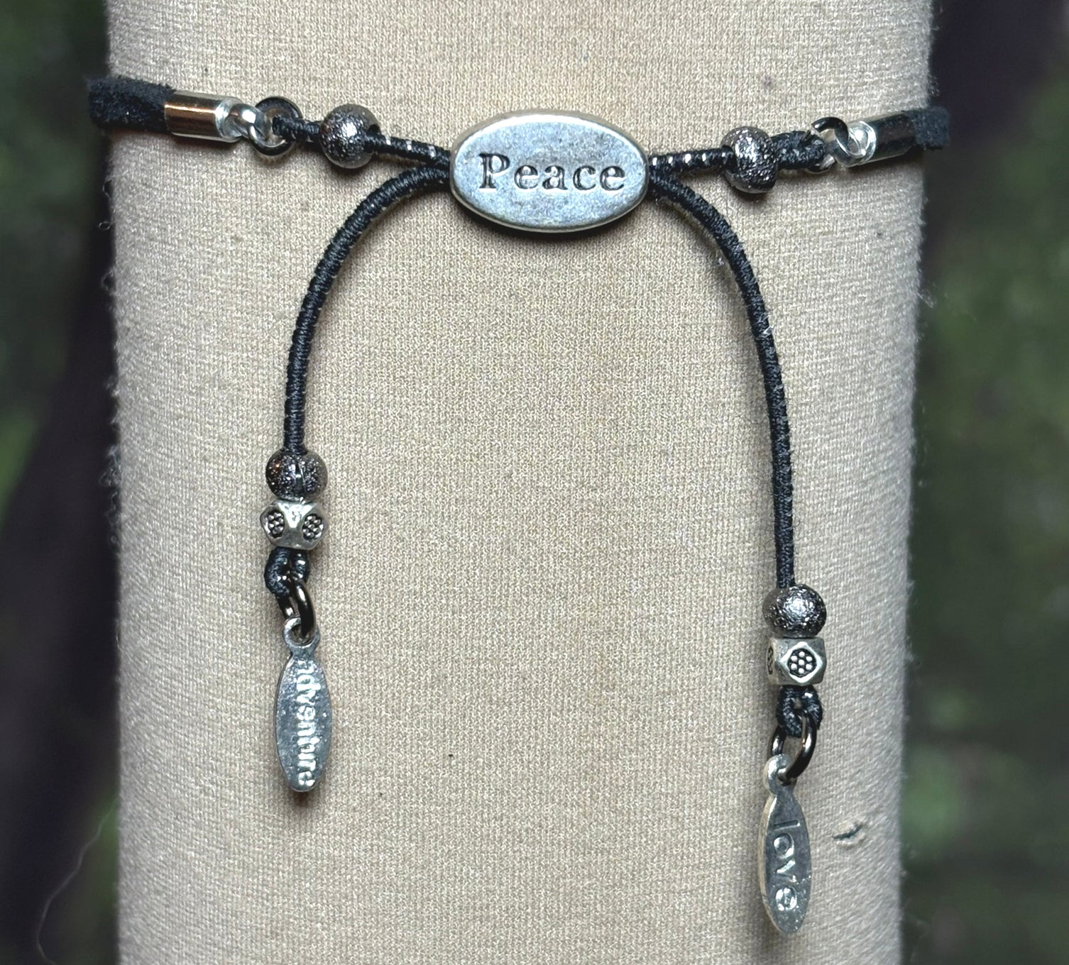 Charming Personal POWER Arm BAND-IT Black Faux Suede Cord Sparkling "Peace" Bird in Flight (Endings: "Love/Adventure")