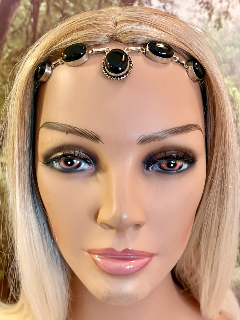 Precious Metal POWER BAND-IT Unique Hand-Crafted Sterling Silver/Genuine Black Gemstones