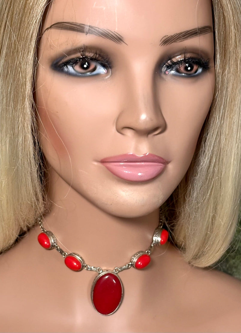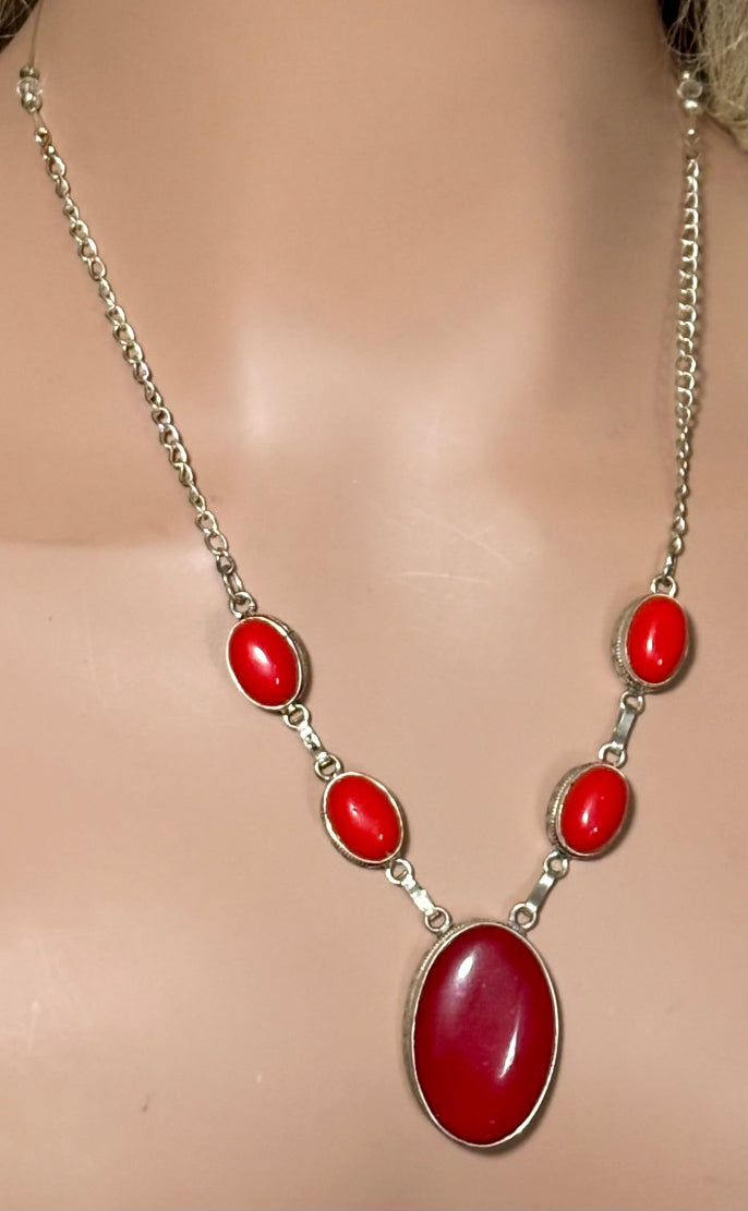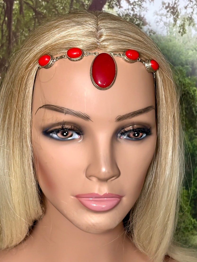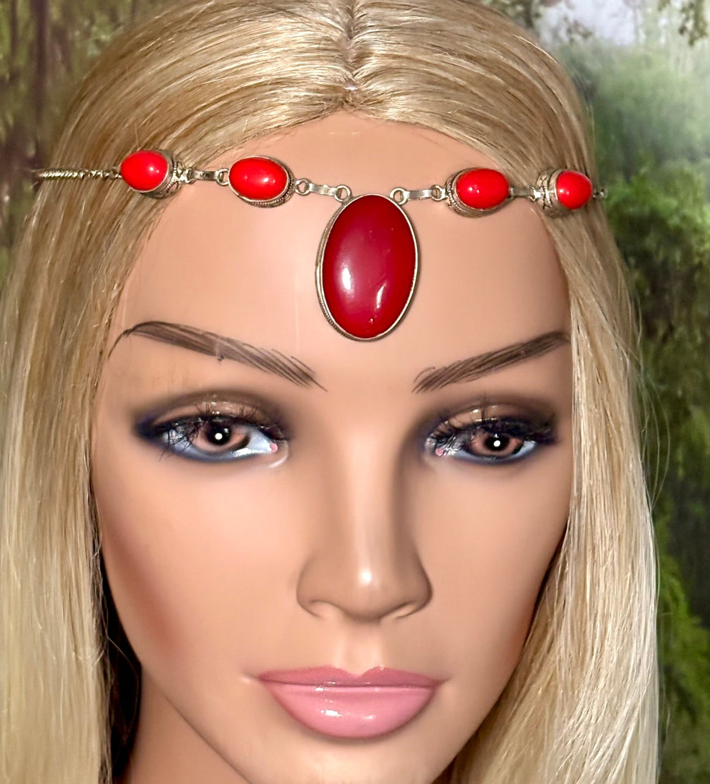 Precious Metal POWER BAND-IT Unique Hand-Crafted Sterling Silver/Genuine Red Dk. Orange Gemstones