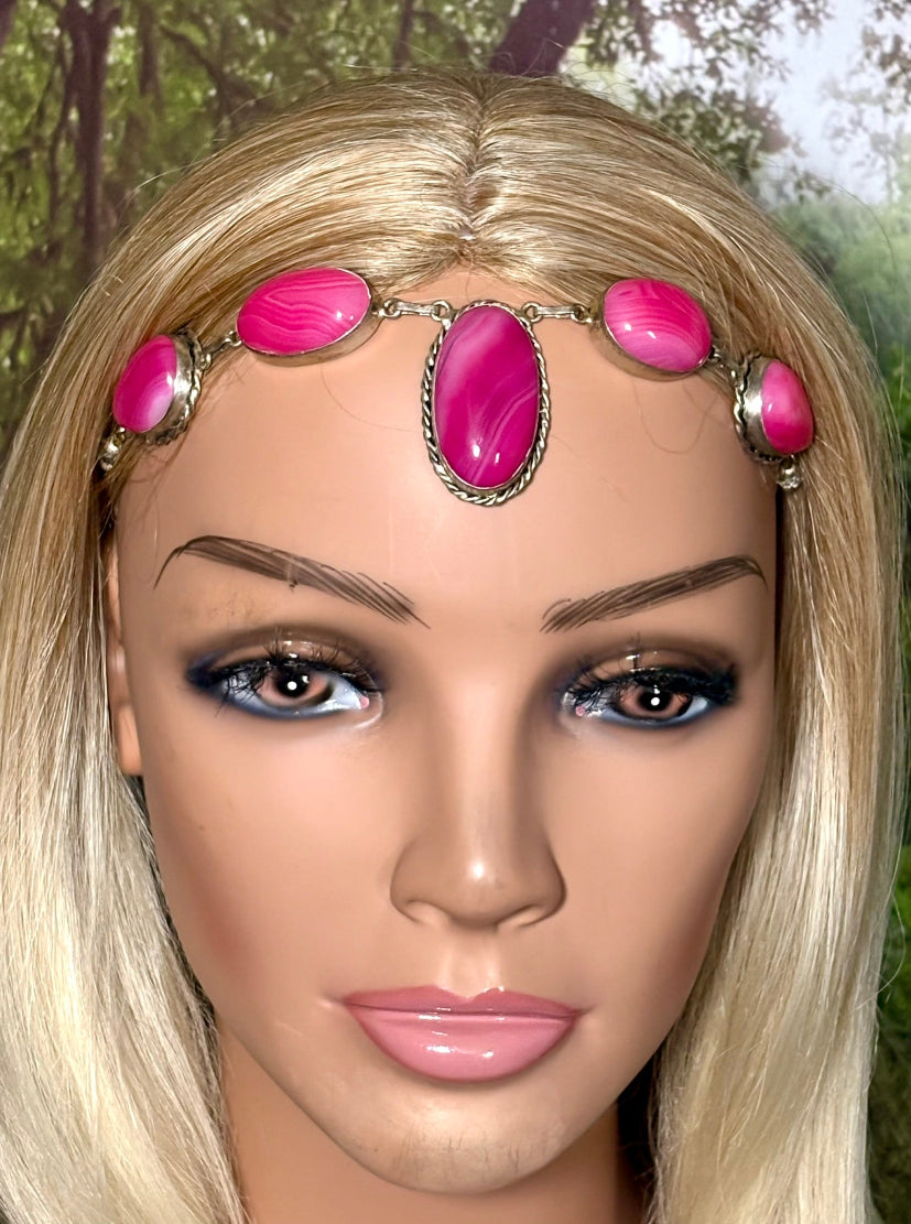 Precious Metal POWER BAND-IT Unique Hand-Crafted Sterling Silver/Genuine Deep Pink Gemstones