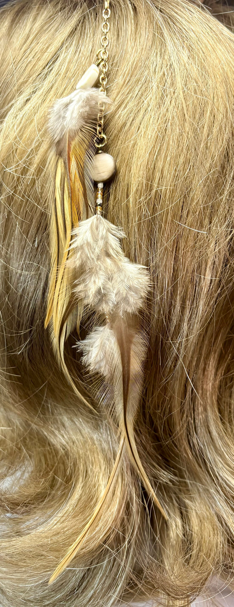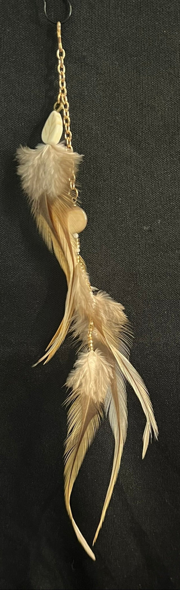 Feather Hair Xtension 2 Gemstones Chained & Beaded (6 Feathers)